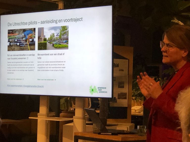 Energie van Utrecht, onze koepel van energiecoöperaties in de provincie, pakte dat verder op. Sophie Schut vertelde erover op het “mini-symposium” dat Energie-U op donderdagavond 13 november organiseerde over mini-warmtenetten. De andere spreker was Robert Jan van Egmond van TKI Urban Energy, de landelijke organisatie die werkt aan kennis en innovatie op energiegebied.