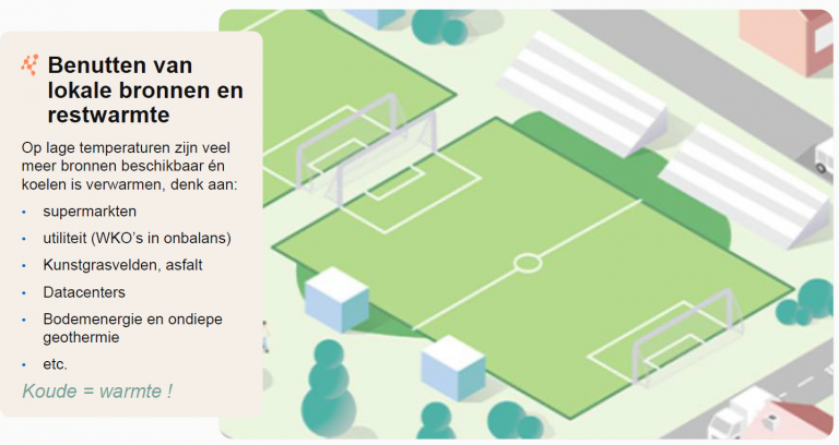 Robert Jan vertelde over zeer lage temperatuur warmtenetten. ZLT. Die lijken op de lus van Sophie maar zijn groter en hoeven niet per se de bodem als bron te hebben. Oppervlaktewater kan en bijvoorbeeld ook warmte die vrijkomt bij koeling van supermarkten. “Die kan je gewoon ophalen”. Je kan denken aan een systeem als bij glasvezel, waar een bedrijf de kabel aanlegt onder de stoep en waarbij ieder huishouden kan aansluiten. Hoeft niet. Bij een groot warmtenet met een temperatuur van vaak 70 graden, wil je voordat je gaat aanleggen zeker weten dat minimaal 70% van de huishoudens gaat aansluiten (en betalen). Anders is die investering te duur en te onzeker. Bij het ZLT-net zoals Robert Jan het voor zich ziet, hoeft dat niet. Sluit maar aan als je eraan toe bent. Je moet dan nog wel zelf een bijpassende warmtepomp kopen. Dat is er dus ook hier eentje zonder buitenunit dus zonder gezoem, gedoe over lelijkheid en zonder vervangingskosten ervan.