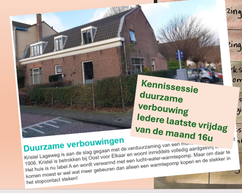 Jan zocht iemand om mee te gaan naar een buurthuis met teveel zomerhitte en vond Cees. Erwin bood zijn archief en kennis over windmolens op Lage Weide aan. Faust en Hilco vertelden bij de borrel over hun verduurzaming thuis. Een nieuw kascommissielid liep warm. Er werd een blik geworpen op het prachtige UCo, waar Energie-U nu drie jaar is gehuisvest, tussen andere duurzame organisaties, in een mooi verduurzaamde monumentale voormalige NS-hal (warmtepomp, vloerverwarming, er komt een kans aan voor zonnepanelen waar we aan werken).